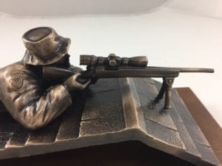 He puts his hat in the view for the other sniper to see and pretends he gets shot in the head.